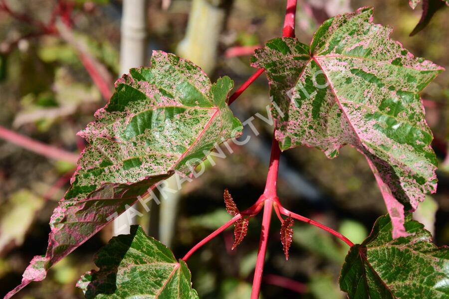 Druh 'Red Flamingo' je novou odrůdou javora, kterou vám u nás nabízíme. Ihned vás upoutá atraktivně zbarvenými listy a větvemi. Listy jsou bílo-zelené, nepravidelně mramorované, mladé listy mají okraje i mramorované, i sytě růžové. Krásně zbarvené větve jsou jasně až neonově růžově-červené a svítí do dálky. Dorůstá do výšky 5m.