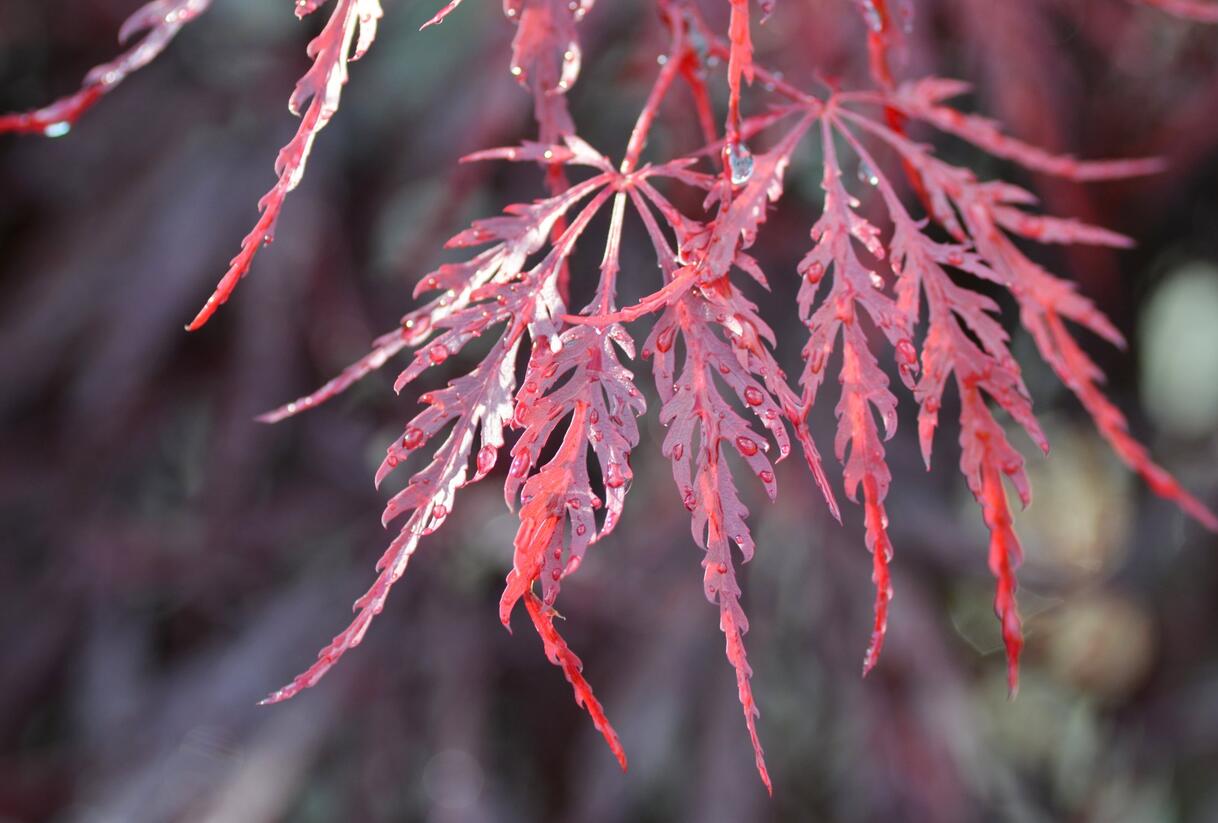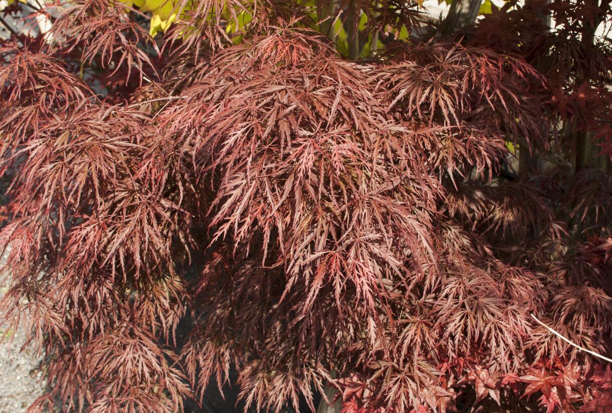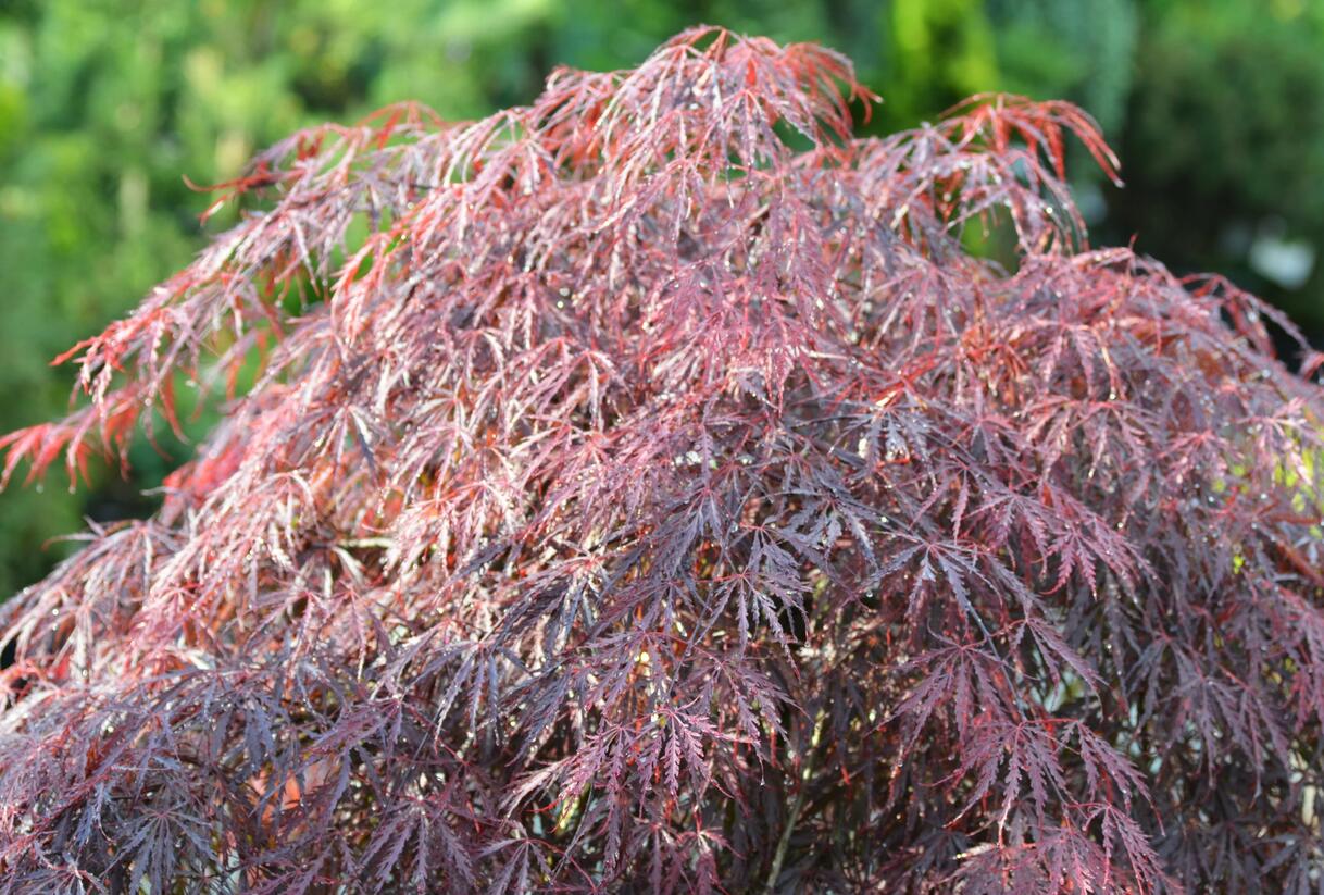 Kultivar Dissectum Garnet patří k nejoblíbenějším javorům. Dorůstá výšky 2 metry a šířky 3 metry. Roste pomalu, široce, zapěstovaný na kmínku vytváří polokulovitou korunu s mírně převisajícími větvemi. Listy jsou hluboce stříhané, na jaře sytě červené, přes sezónu tmavnou do tmavě vínové, méně osluněné části zelenají. Podzim pak uvítají v zářivých červených odstínech.