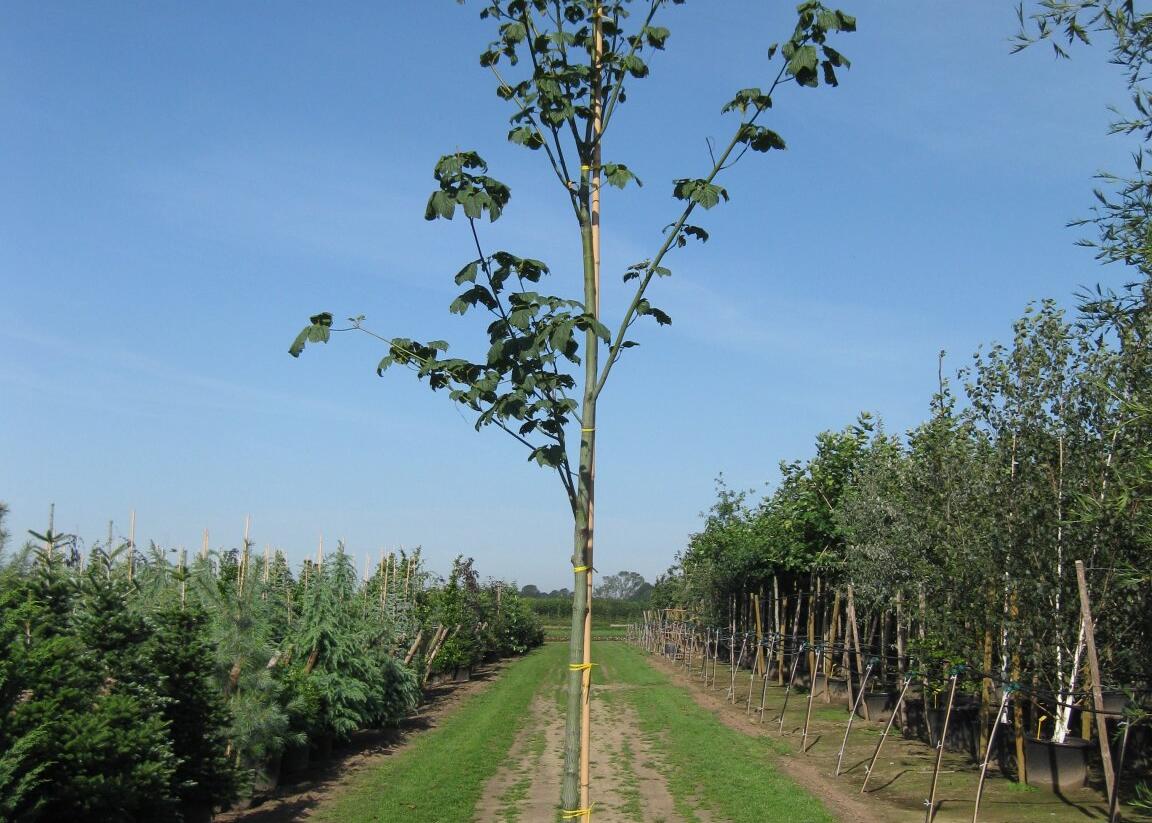 Okrasný listnatý strom střední velikosti s jemně členěnou korunou, sytě zelenými listy a drobnými květy ve světlých, lehce žlutavě zelených tónech. Působí velmi přirozeně, jako strom z polostinného lesa, a vnáší do zahrady klid a zeleň po celý rok do podzimu.