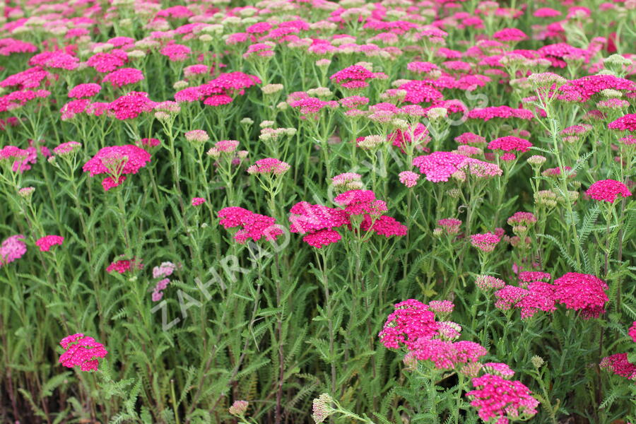 Dodejte jemnost vaší zahradě díky jasně růžovým květům s droboučkým bílým středem a aromatickým listům tohoto řebříčku. Květinové shluky jsou husté, zploštělého tvaru a kvetou po celé léto. Listy jsou kapradinového tvaru zelené barvy a mají kořeněnou vůni, která může přetrvávat i při použití v sušeném aranžmá.