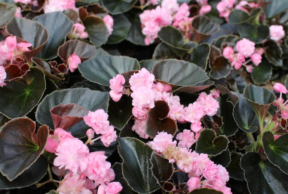 Romantická novinka mezi begoniemi, která vás zaujme shluky malých dvojitých růžových květů nad lesklými tmavě zelenými listy.