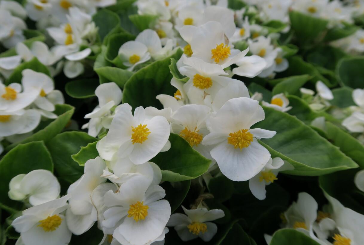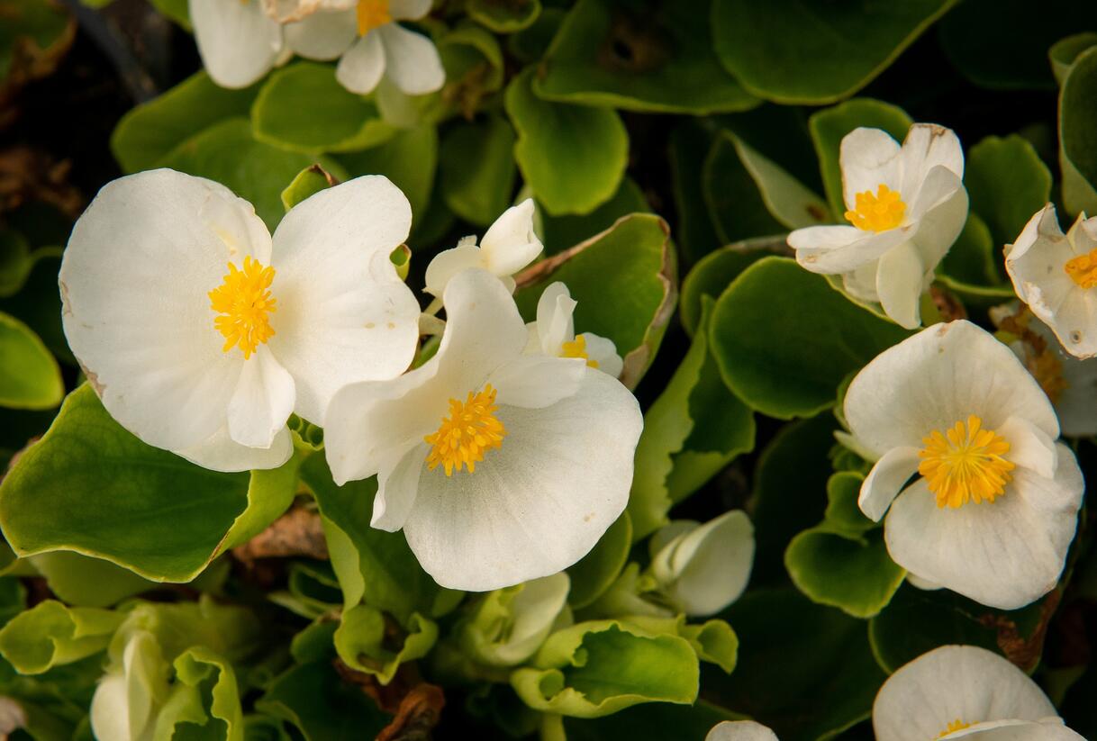 Begónie stálokvětá, ledovka, voskovka 'Brasil White' v zahradě:
