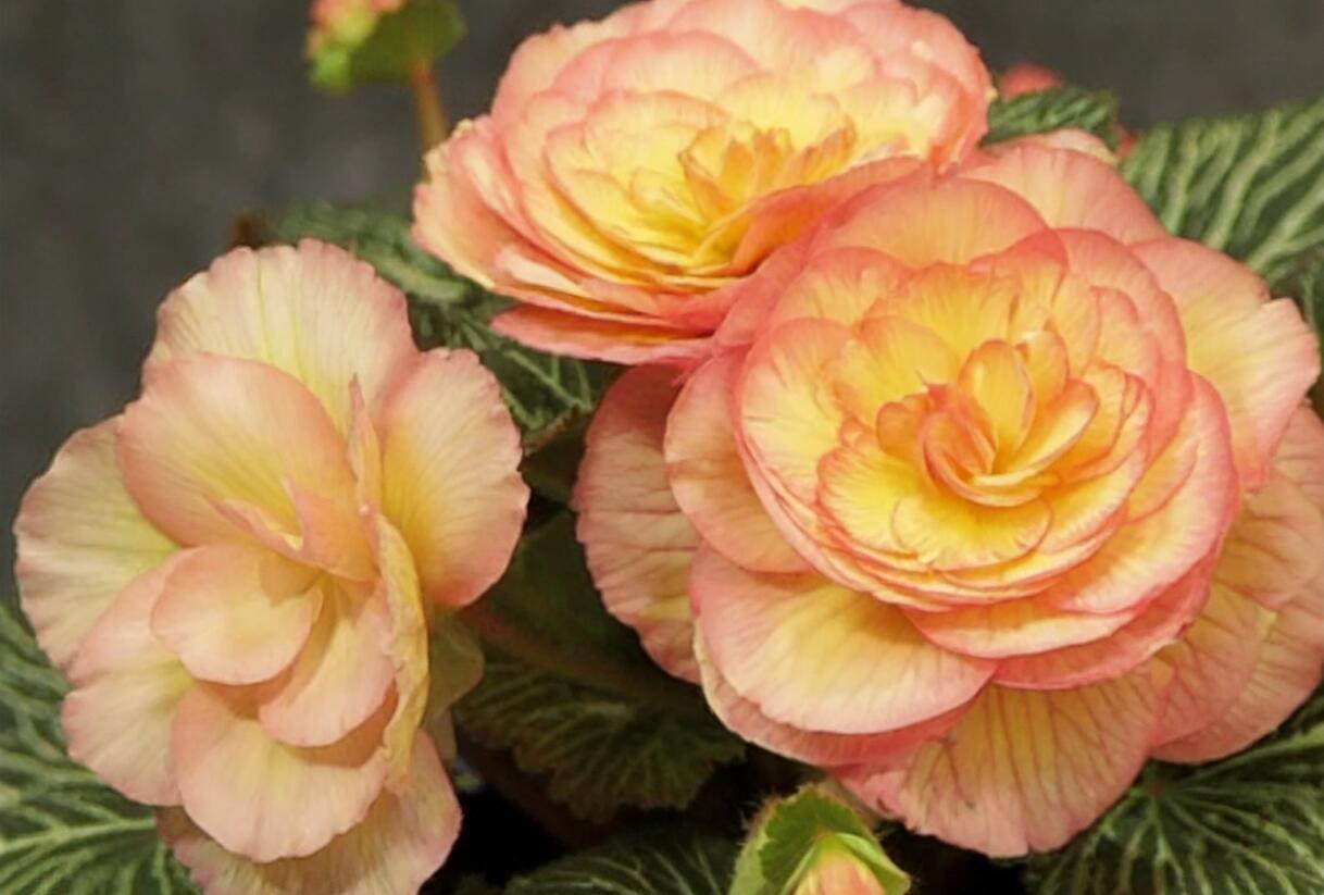 Dvoubarevné plné květy v odstínech broskvovo-ranžové nebo lososové s tmavším lemováním okvětních plátků budou nádherným prvkem v truhlíku nebo závěsném koši.  Velké a bohaté květy budou ozdobou několik měsíců. Begónie je nenáročná na pěstování a skvěle se hodí do polostínu nebo do stínu.