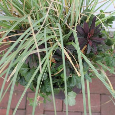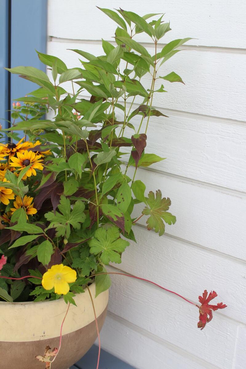 - z květináče hravě vykukuje kakost oddenkatý (Geranium macrorrhizum 'Ingwersen').