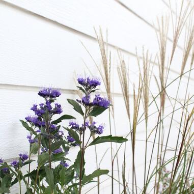 - modře kvetoucí ořechokřídlec Caryopteris clandonensis 'Grand Blue' (Inoveris) přitahuje opylovače,