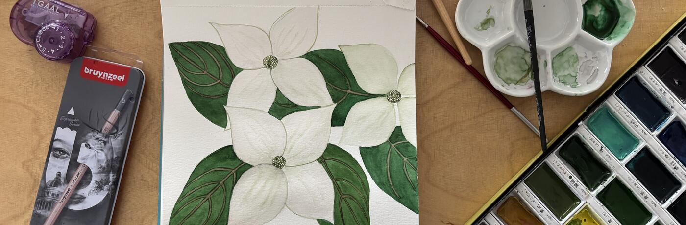 Dřín japonský má listeny bílé. Oblíbený je růžový kultivar dřínu ‚Satomi‘ nebo zelenkavý ‘Milky Way‘.