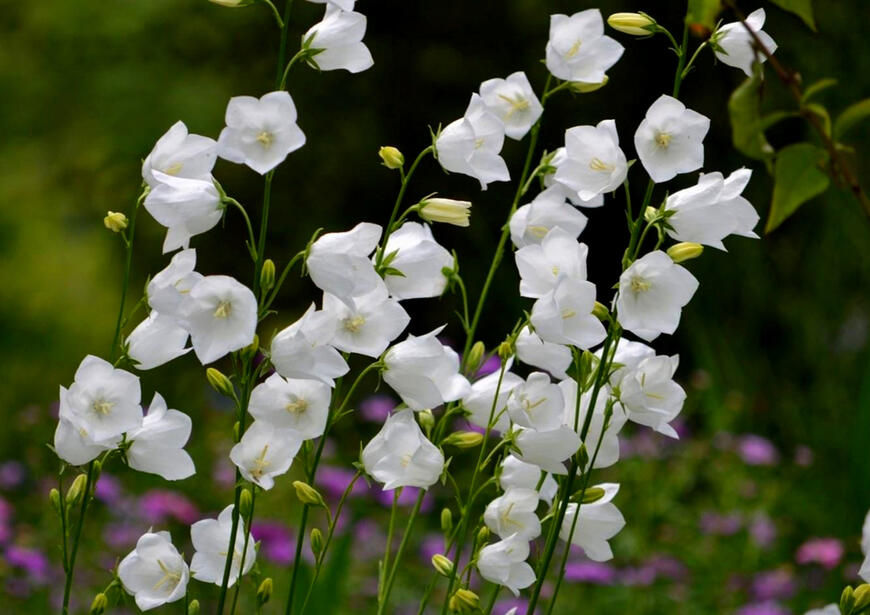 V přírodě je zvonků na 800 druhů, zahradních kultivarů je pak nepočítaně. Nízké druhy najdou uplatnění na skalkách a zídkách, vyšší zvonky využijete v trvalkových záhonech a rabatech, chybu neuděláte, když je vysadíte v kombinaci s růžemi. Zvonky ocení i užitečný opylující hmyz – včely, čmeláci i motýli budou doma v každé zahradě, kde jsou doma i zvonky.