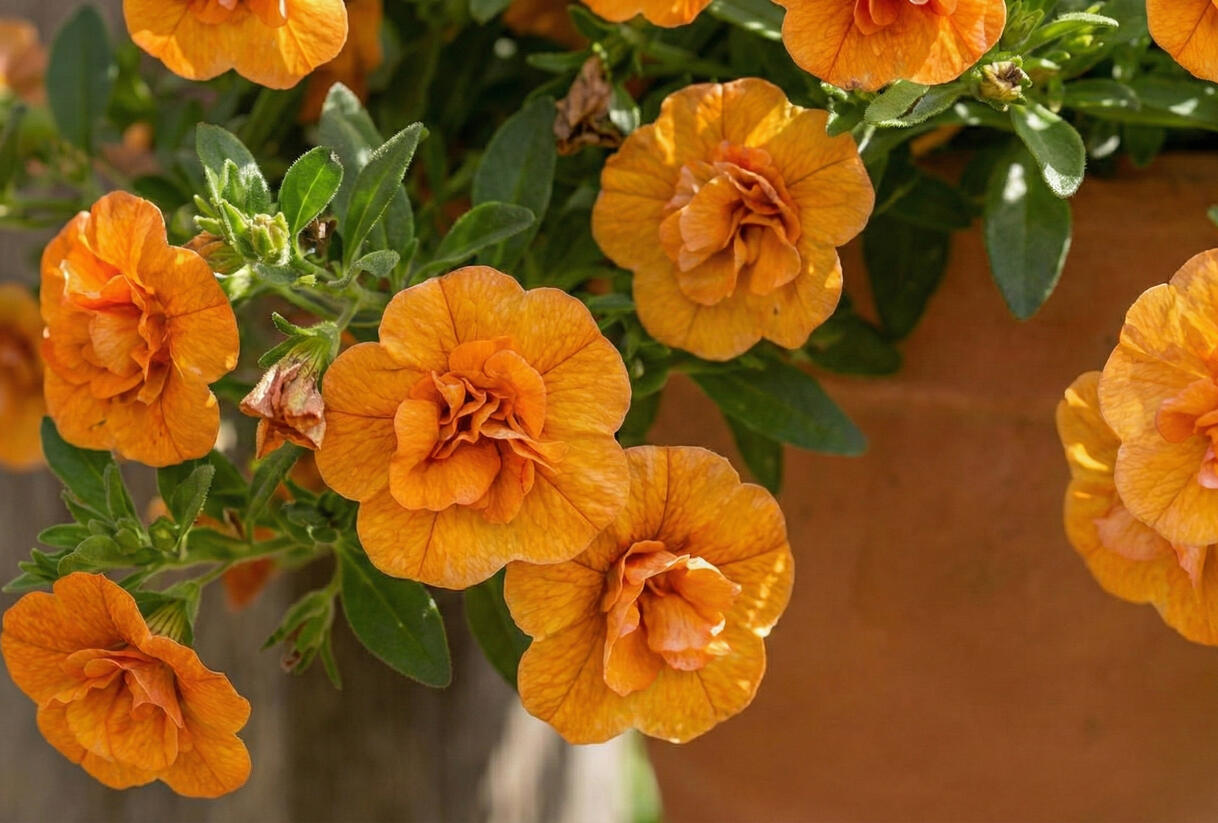 Minipetúnie 'Sweetbells Double Orange' v zahradě:
