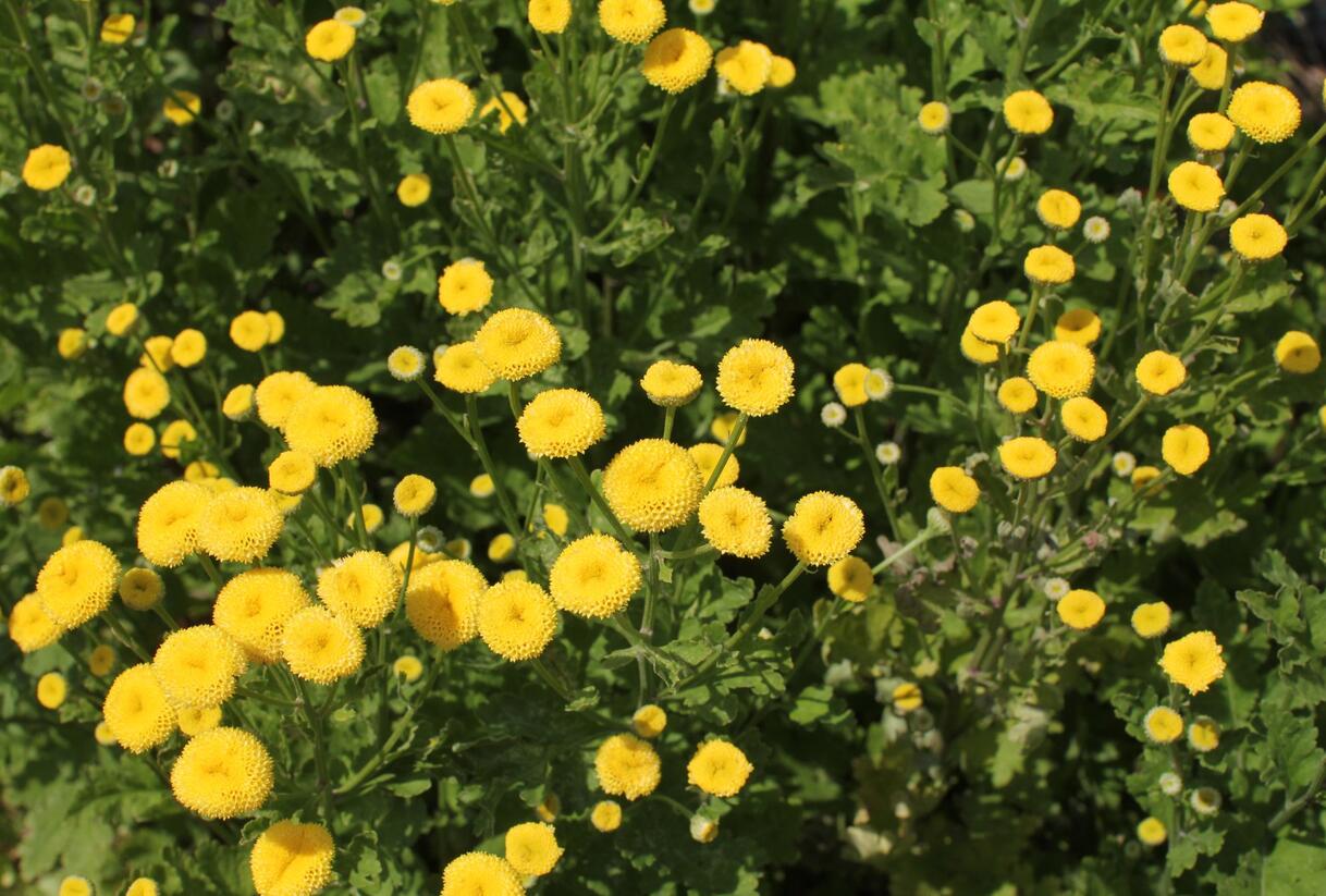 Chrysanthemum parthenium 'Vegmo Sunny Ball Gold'