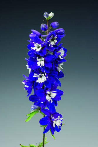 Delphinium x cultorum 'Excalibur Dark Blue with White Bee'