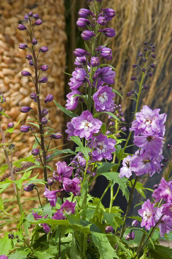 Delphinium x cultorum, česky ostrožka. Tato nápadná trvalka je velmi oblíbená hlavně v odstínech modré barvy. Ačkoli druh 'Excalibur Lilac Rose with White' je barvy bílo-růžové, nic mu neubírá na kráse, ba právě naopak.… Vše o produktu