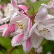 Druh 'Carminea' je nižší trojpuk dorůstající do výšky 100 cm. V květnu až červnu je doslova obsypaný bílo-růžovými něžnými květy. Květy vykvétají v hustých soukvětích a krásně zdobí keř. Zelené listy na zimu opadávají.