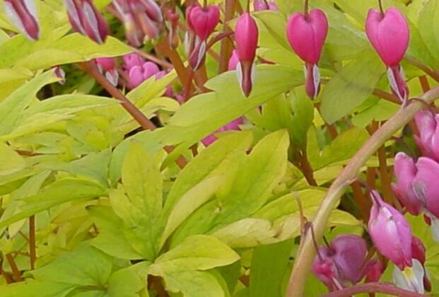 Srdcovka nádherná 'Yellow Leaf' v zahradě: