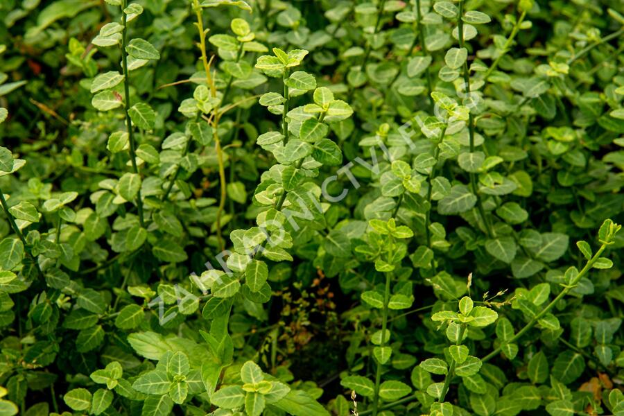 Kultivar 'Green Carpet' je úhledný poléhavý keř, který zaujme nejen kompaktním habitem, ale i drobnými, sytě zelenými listy na větvičkách, které velmi snadno zakořeňují. Listy ani s příchodem chladnějších podzimních či zimních dní nemění svou barvu a zelené koberce zkrášlují zahradu i tehdy, když je pokryje jemný sněhový poprašek. Kultivar běžně dorůstá do výšky 30 až 40 cm.