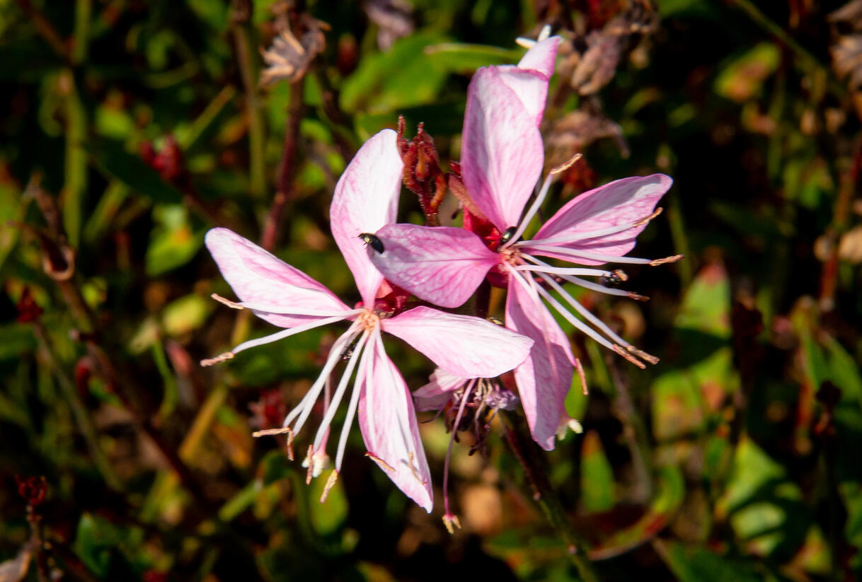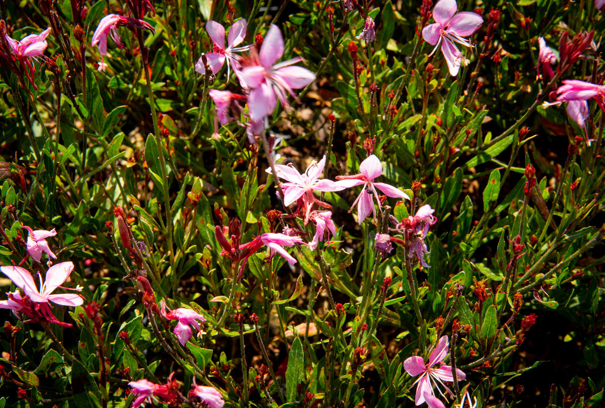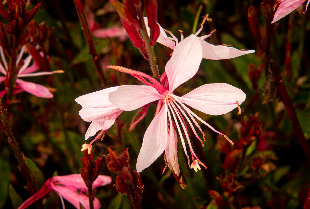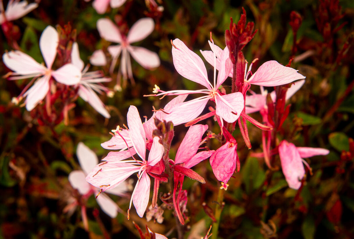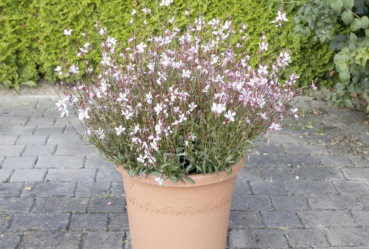 Lehká, nadýchaná trvalka tvoří nízké trsy útlých stonků, nad kterými se vznášejí drobné květy připomínající motýlí křídla. Okvětní plátky mají něžný přechod do růžové barvy, celkový dojem působí velmi vzdušně a romanticky. Zelené listy vytvářejí nenápadné pozadí, které nechává vyniknout květům.