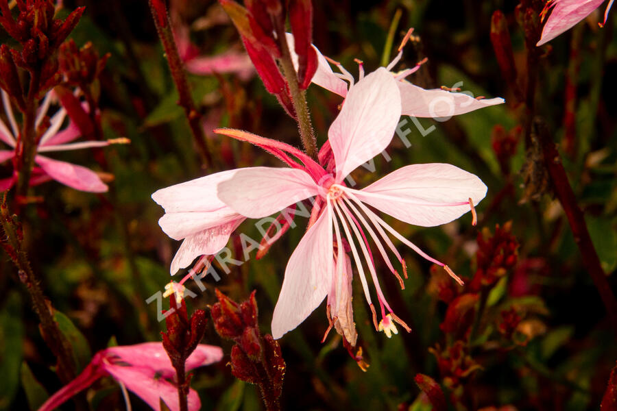 Gaura lindheimeri 'Butterfly Appleblossom' je kompaktně rostoucí, dorůstá okolo 40 cm výšky. Pyšní se velkými květy, jemně růžové barvy a sytě růžovými poupaty.