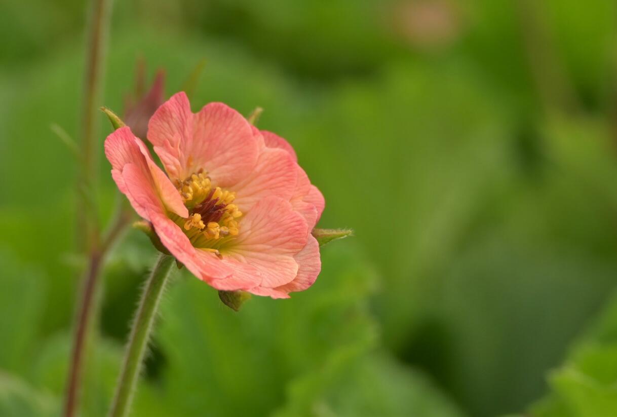 Romantická trvalka s jemnými, miskovitými květy v odstínech růžové až meruňkové kvete od května do srpna. Květy se nesou na tenčích stoncích nad nízkým, svěže zeleným olistěním, takže působí lehce a vzdušně.