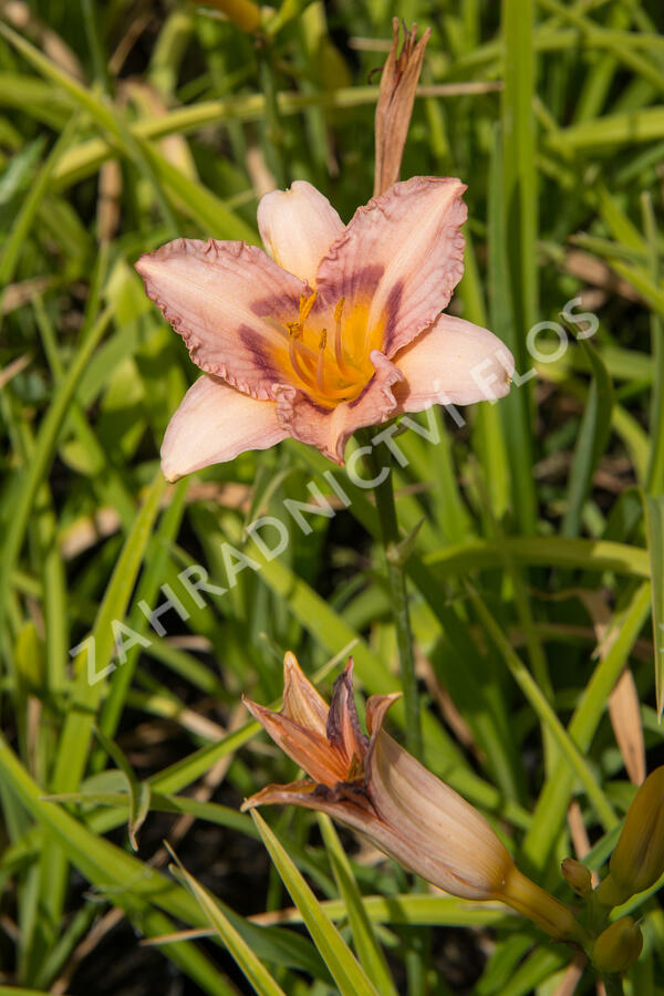 Denivky jsou jednoděložné rostliny, většinou vytrvalé, mající hlízy nebo oddenky. V našich podmínkách na zimu zatahují. Jejich zástupci jsou rozšířeni v mírném pásu severní polokoule, hlavně v Japonsku. Kultivar 'Longfields Glory' byl vyšlechtěn teprve nedávno. Dorůstá výšky i šířky kolem 0,5 metru. Má trávovité, sytě zelené listy, nad kterými vyrůstají stvoly nesoucí nálevkovité lososově zbarvené květy se žlutým středem. Uprostřed svrchních okvětních plátků je patrná světlejší linka. Kvete od června do srpna.
