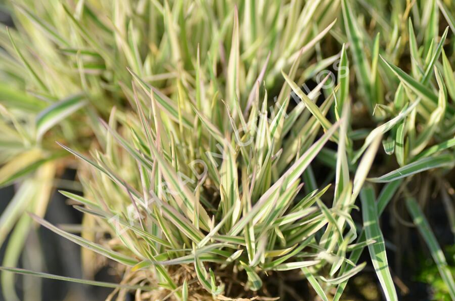 Kultivar 'Albovariegatus' se pyšní úhlednými, hustými, poměrně rozložitými trsy, které díky panašovaným, úzkým listům se sytě zeleným středem a krémově bílými okraji působí v zahradě svěže a dekorativně nejen po odkvětu letniček a trvalek, ale i v zimě, kdy je zkrášluje námraza nebo sníh. A přestože se tato okrasná tráva pěstuje zejména pro dekorativní, na dotyk příjemné listy a ne pro květiny, bez povšimnutí nemohou zůstat ani stříbřitá květenství, která se na rostlině objeví v červnu a červenci.