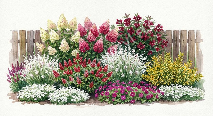 - Hortenzie latnatá (keř s celoročním efektem),