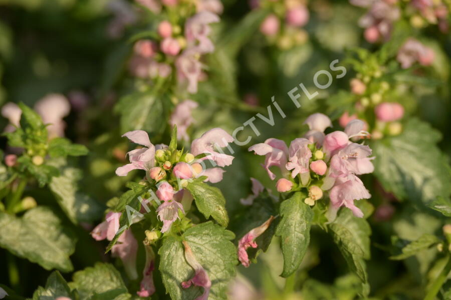 Druh 'Pink Pewter' vás zaujme svými listy, které jsou zelené s úzkým středovým pruhem bílé barvy. Krásně ozdobí nejen vaše záhony, je vhodná i jako balkónová rostlinka do truhlíků na balkóně. Kvete od května do června růžovými květy hluchavkovitého tvaru. Dorůstá do výšky 20 cm a tvoří husté koberce. Nemusíte se bát, že kvete krátce, její listy jsou tak hezké, že květy na ní chybět nebudou.
