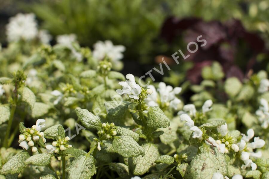Druh 'White Nancy' zaujme všechny kolem svými stříbrnými listy a bílými, pyskovitými květy vykvétajícími v přeslenech od května do června. Rostlinka dorůstá do výšky 20 cm, má kompaktní tvar. Krásně ozdobí váš záhon nebo balkón.