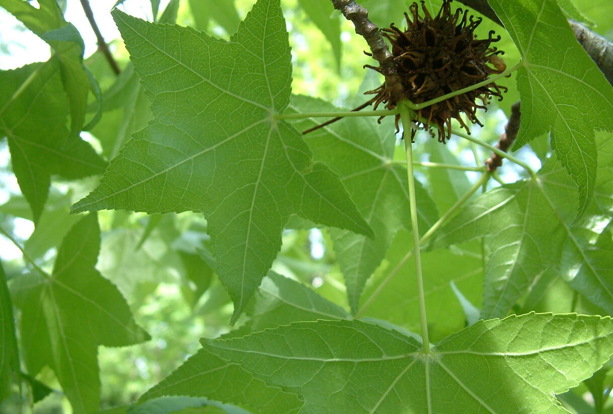 Ambroň je opadavý strom či keř dorůstající do výšky 8 – 15 m a šířky kolem 6 m. Koruna je kuželovitá, později okrouhlá, široce rozvětvená. Tmavě šedá borka je hluboce rozbrázděná. Pěticípé listy mají podobný tvar jako listy javorů, ale jsou více vykrajované. Na podzim se vybarvují v odstínech žluté, oranžové a červené. Zelenkavě žluté, drobné květy jsou seskupeny v kulovitých hlávkách. Kvete od konce února do poloviny května. Na podzim pak dozrávají kulaté, asi 3 cm veliké, pichlavé plody. Ambroň se řadí do čeledi Hamamelidaceae – vilínovité.