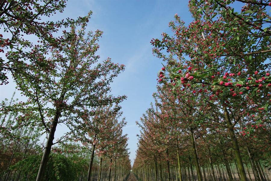 Tento opadavý malý strom patří do čeledi Rosaceae – růžovité a rodu Malus. Dorůstá do výšky 4-6 m a vytváří kulovitou, hustou korunu. Zelené listy se na podzim barví do žluta a oranžova. Od konce dubna je celý strom… Vše o produktu