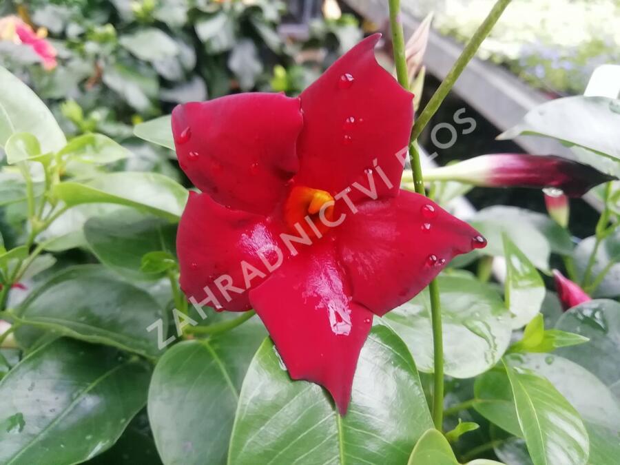 Nádherná popínavá rostlina, která se v našich podmínkách pěstuje ve velkých nádobách. Svými bohatými a jasně barevnými květy přitahuje pozornost. Má tmavě zelené, lesklé, oválné listy, dlouhé 6 cm. Květenství je růžové nebo červené, kalichovité.