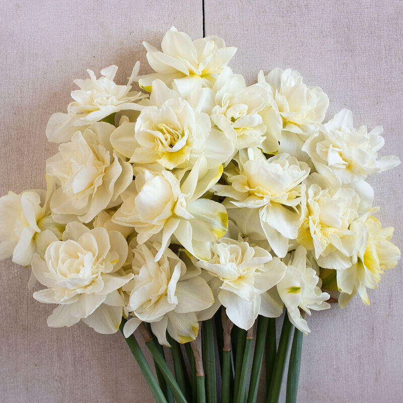 Luxusní plnokvětý narcis, který zaujme jemně zvlněnými okvětními plátky. Na pevných stoncích rostou květy, které postupem času mění svou barvu. Krémové s jemně žlutě zbarveným středem vyblednou do barvy slonovinové kosti.