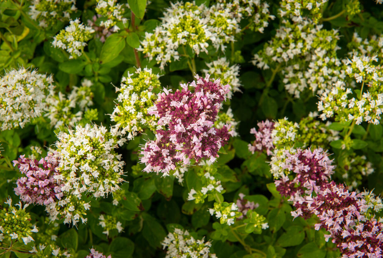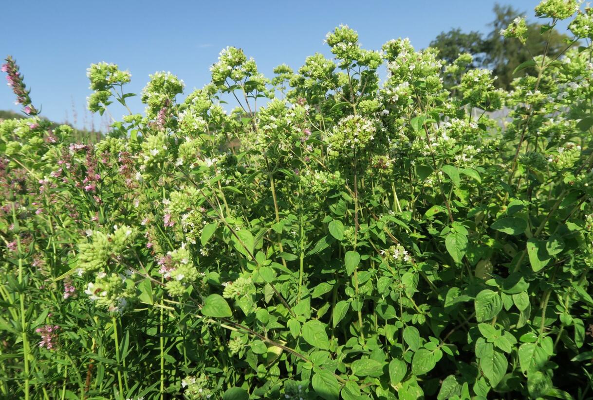 Dobromysl obecná 'Zorba White' v zahradě: