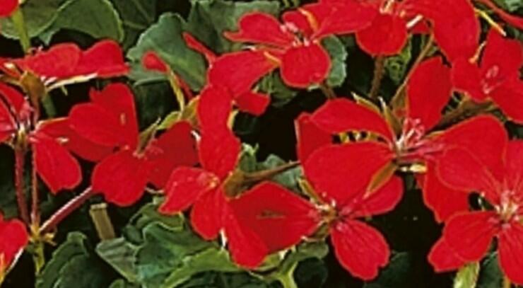 Tato převislá pelargonie vytváří husté, svěží trsy sytě zelených listů, ze kterých po celé léto vyrůstají jednoduché, výrazně červené květy.