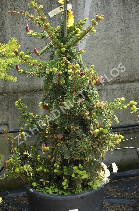 Jehličnan z čeledi borovicovité a rodu smrk, který dorůstá 5 metrů výšky a 3 metrů šířky. Tento kultivar je velice pomalého vzrůstu a široce kuželovitého habitu. Jehlice jsou sytě zelené. Mladé samčí šištice mají vínově… Vše o produktu
