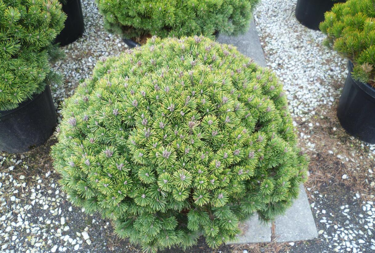 Nízko rostoucí jehličnatý keř s hustým, polštářovitým tvarem. Působí velmi upraveně a elegantně po celý rok. Kratší, tužší jehlice, mají sytě zelené zbarvení a rostou ve dvojicích, takže vytvářejí hustý povrch bez prázdných míst. S věkem se tvar mění z polštářovitého do mírně vystouplé, kulovitější siluety, která výborně drží tvar bez nutnosti střihu.