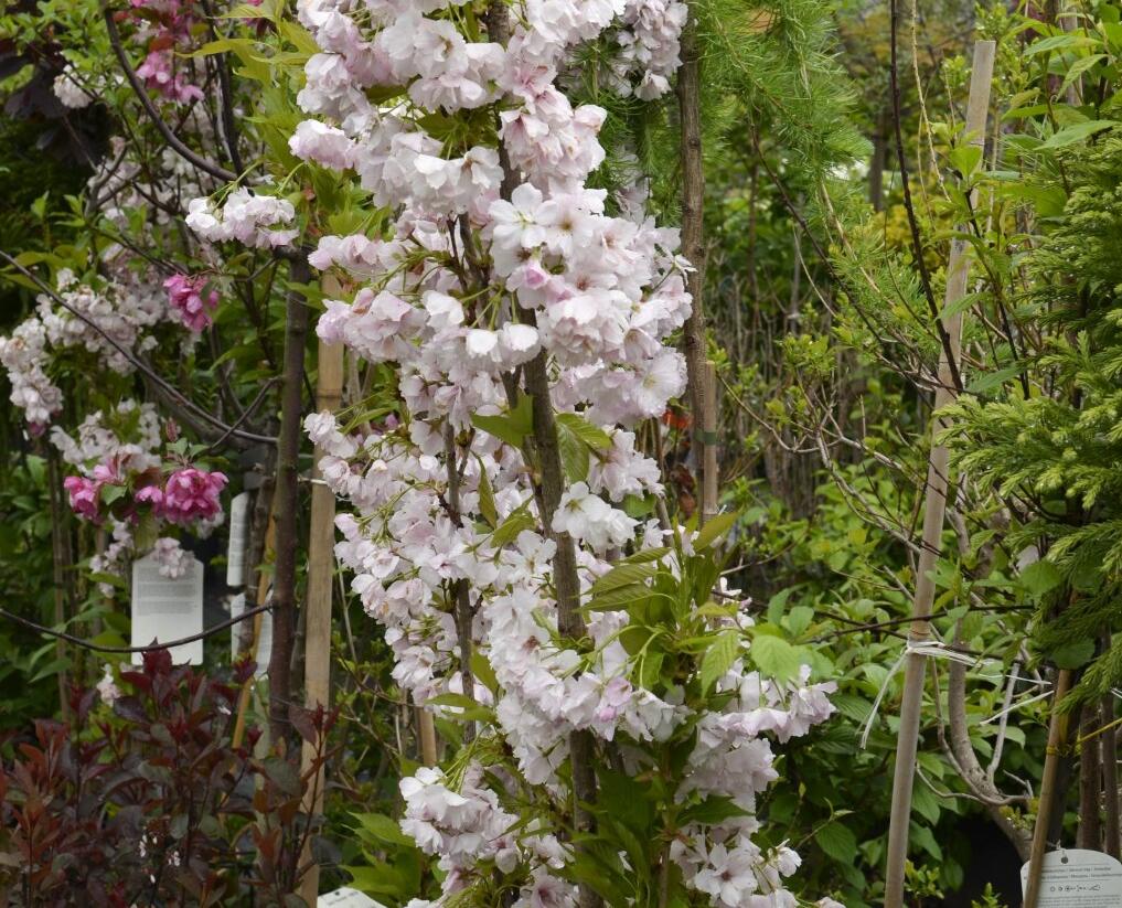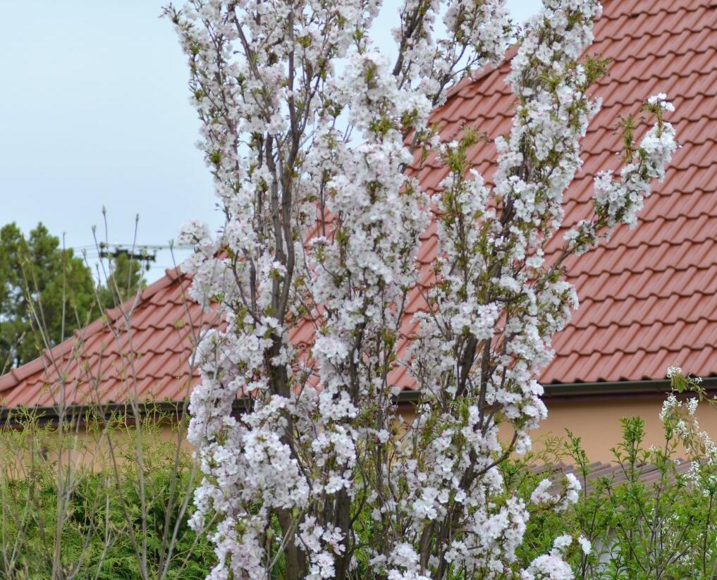 Višeň pilovitá, sakura 'Amanogawa' v zahradě: