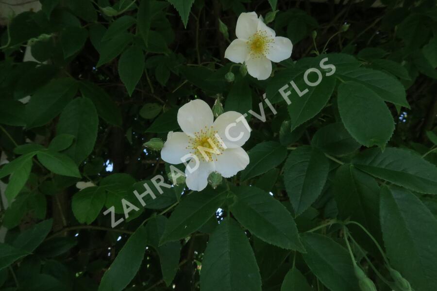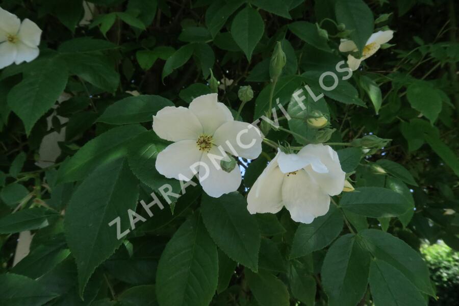 Vitální pnoucí růže 'Kiftsgate' je vynikajícím důkazem našich slov. Kultivar vytváří porost nesoucí lesklé listy a květy, který může v dospělosti dosáhnout 8 až 12 m výšky. Kultivar kvete stovkami drobnějších, pětičetných bílých květů se zlatožlutými tyčinkami uprostřed. Příjemně vonící květy jsou uspořádány v bohatých soukvětích, které nejednou vytvoří ucelenou barevnou plochu a téměř pokryjí sytou zeleň listí. Růže vás bude svými květy těšit od července do září.