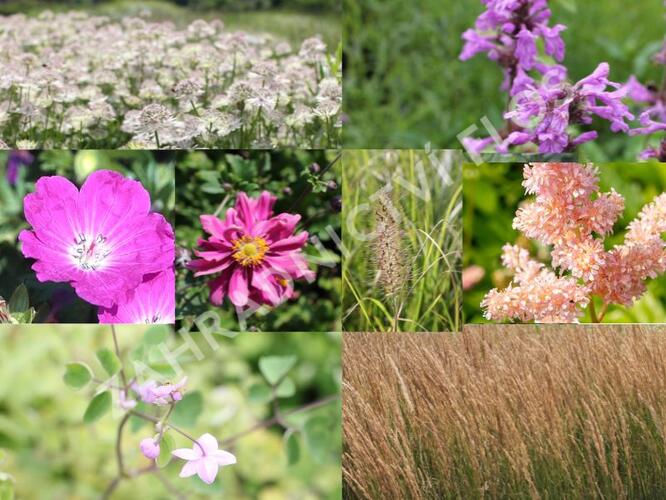 Trvalkový záhon můžete vysadit do polostínu nebo na slunce s částečně zastíněným okrajem. Romantická kombinace trvalek kvetoucí v tónech růžové je doplněna travinami. Kvete bíle a v tónech růžové, podzimní aspekt je… Vše o produktu