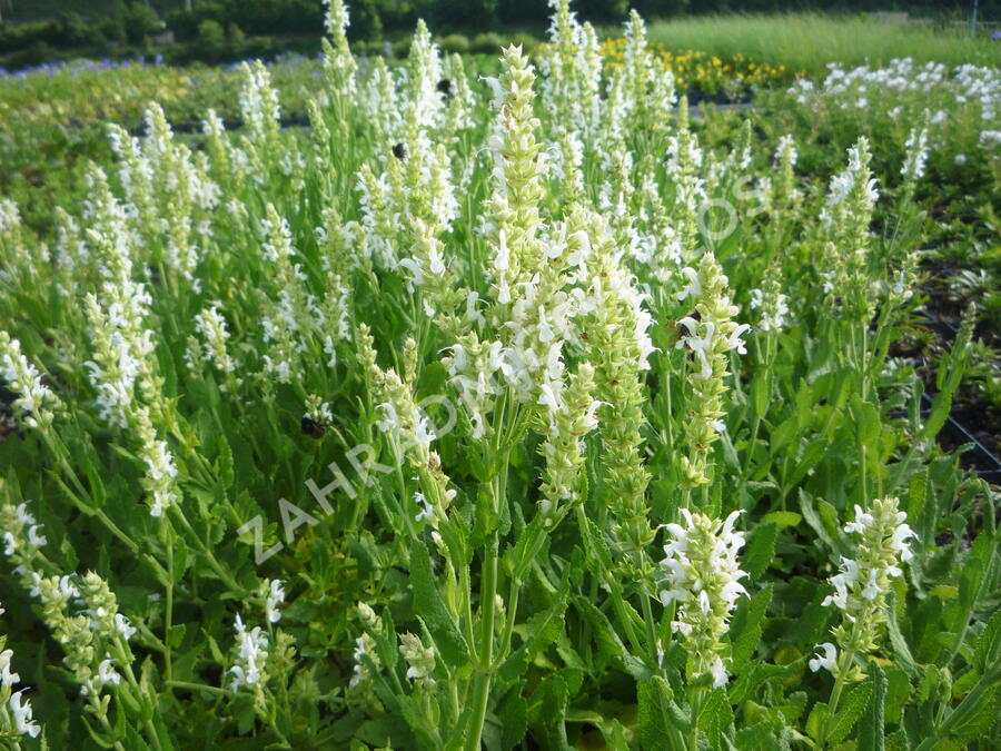Kultivar 'Schneehügel' patří mezi novější šalvěje. Zaujme svým nevšedním zbarvením. Bílé hluchavkovité květy ve vzpřímených klasech září už zdálky. Kvete velmi dlouho od června do září a opakovaně. Příjemně voní a celá rostlina dorůstá do výšky 50 cm.