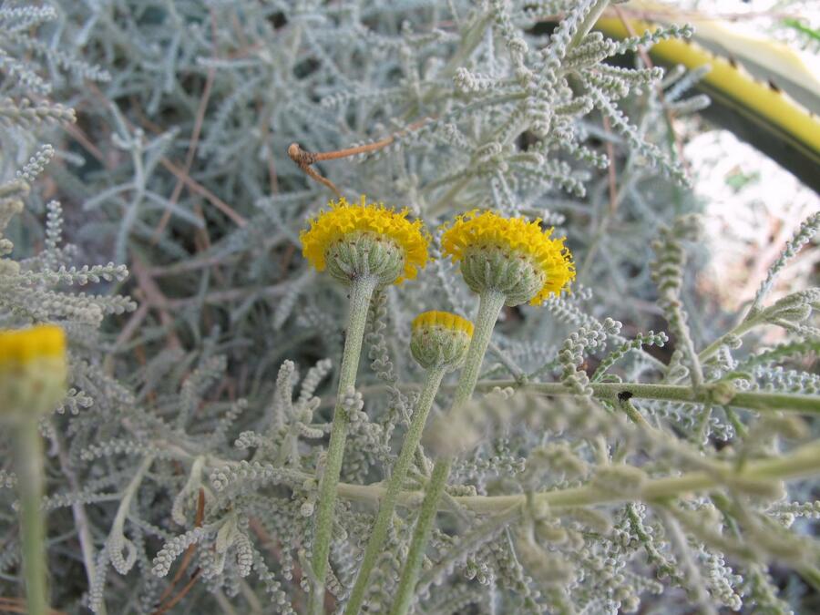 Santolina je trvalka patřící do čeledi Asteraceae – hvězdnicovité. Pochází z jihozápadní Evropy a severozápadní Afriky. Santolina 'Silberblättrig' je vždyzelená, aromatická trvalka se stříbrnými, vykrajovanými a drobnými listy, které vytváří kulovité trsy. Neopadává, takže zdobí zahradu celý rok. Kvete na konci stonků v období července a srpna zlatě žlutými květy podobnými heřmánku, samozřejmě bez bílých okvětních listů.