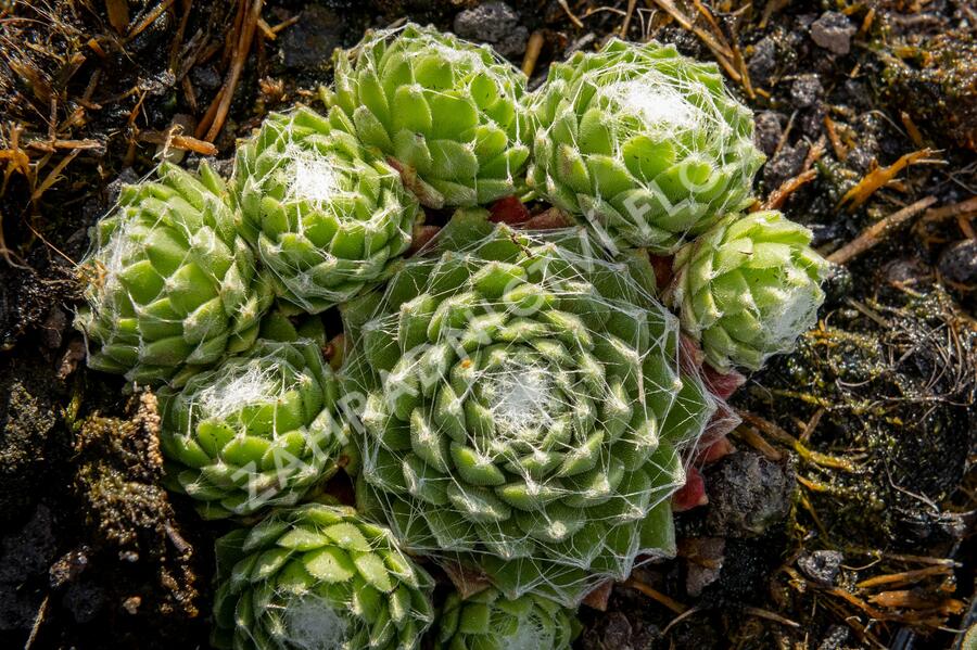 Svěže zelené růžice s červeno-hnědým okrajem dorůstají do výšky 0,1 m a na jaře je pokrývají drobné bílé chloupky s jemnými pavučinkami. Poměrně rychle se rozrůstají do trsů až koberců, ale nikdy nejsou plevelem. V létě kvetou růžovými květy na vzpřímených stoncích. Po odkvětu mateřská růžice odumírá, ale dceřiné růžice rostou dál.