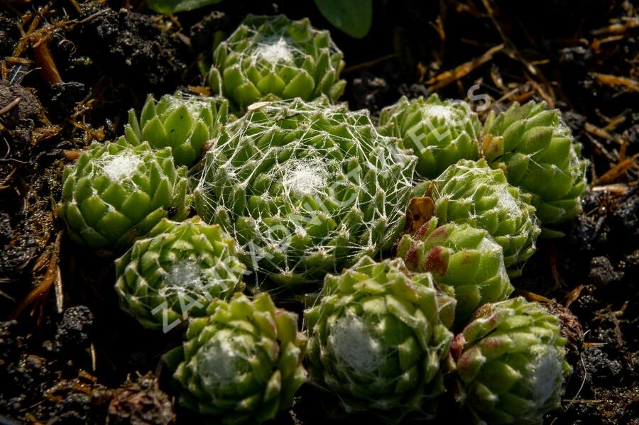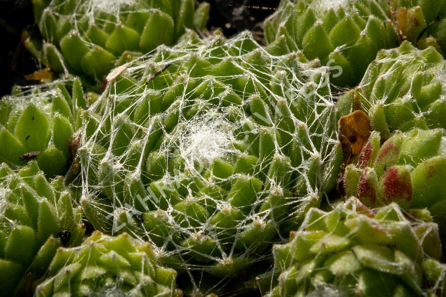 Sempervivum 'Silberling' s pravidelnými růžicemi hrubých, dužnatých listů a s jemnou pavučinkou nataženou na jejich hrotech působí velmi svěže a vesele. Oživí okraje záhonů, zelené střechy i sluneční skalky.