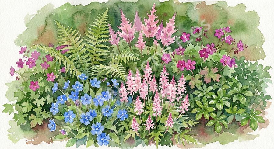 Trvalkový záhon do stínu Svah ve stínu