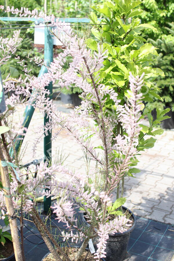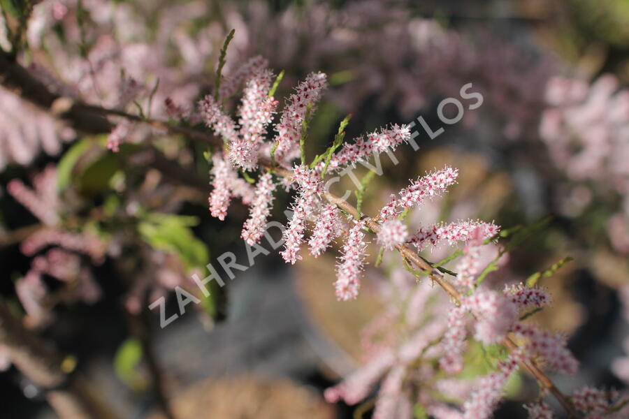 Dřevina pochází z čeledi Tamaricaceae – tamaryškovité a rodu Tamarix. Dorůstá do výšky 3-4 m a vytváří rozložitý opadavý keř. Druh pochází z jihovýchodní Evropy a Malé Asie. Listy jsou světle zelené, šupinovité a jsou spirálovitě uspořádány na větvičce. Drobné květy v různých odstínech růžové a bílé jsou uspořádány v dlouhých latách. Kvetou od dubna do června. Tamaryšky střiháme pouze po odkvětu. Hodně první roky po výsadbě, abychom dosáhli hustě větvených keřů. Každoročně lze hodně sestřihnout 1 a 2- leté výhony. Starší větve pouze postupně. Rostlině vyhovují slunná a suchá stanoviště. Půda musí být dobře propustná. Snáší zasolený substrát. Hodí se jako solitera do předzahrádek, menších zahrad a prostor.