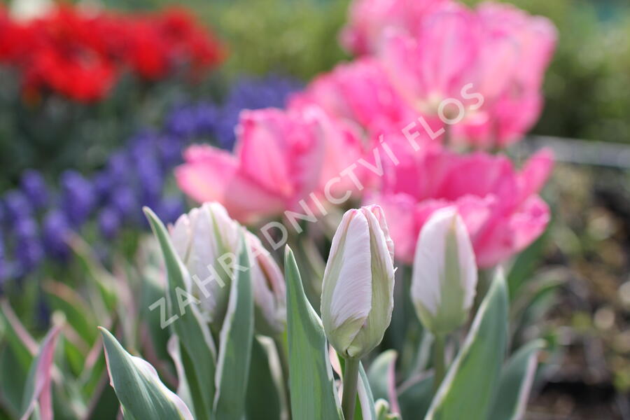 Výrazný papouškový tulipán, který okouzlí svými bohatě zvlněnými a třepenitými okvětními lístky v odstínech sytě růžové a krémové blednoucí do bílé. Kontrastní listy mají bílý okraj, který je lehce do zelena. Jeho… Vše o produktu