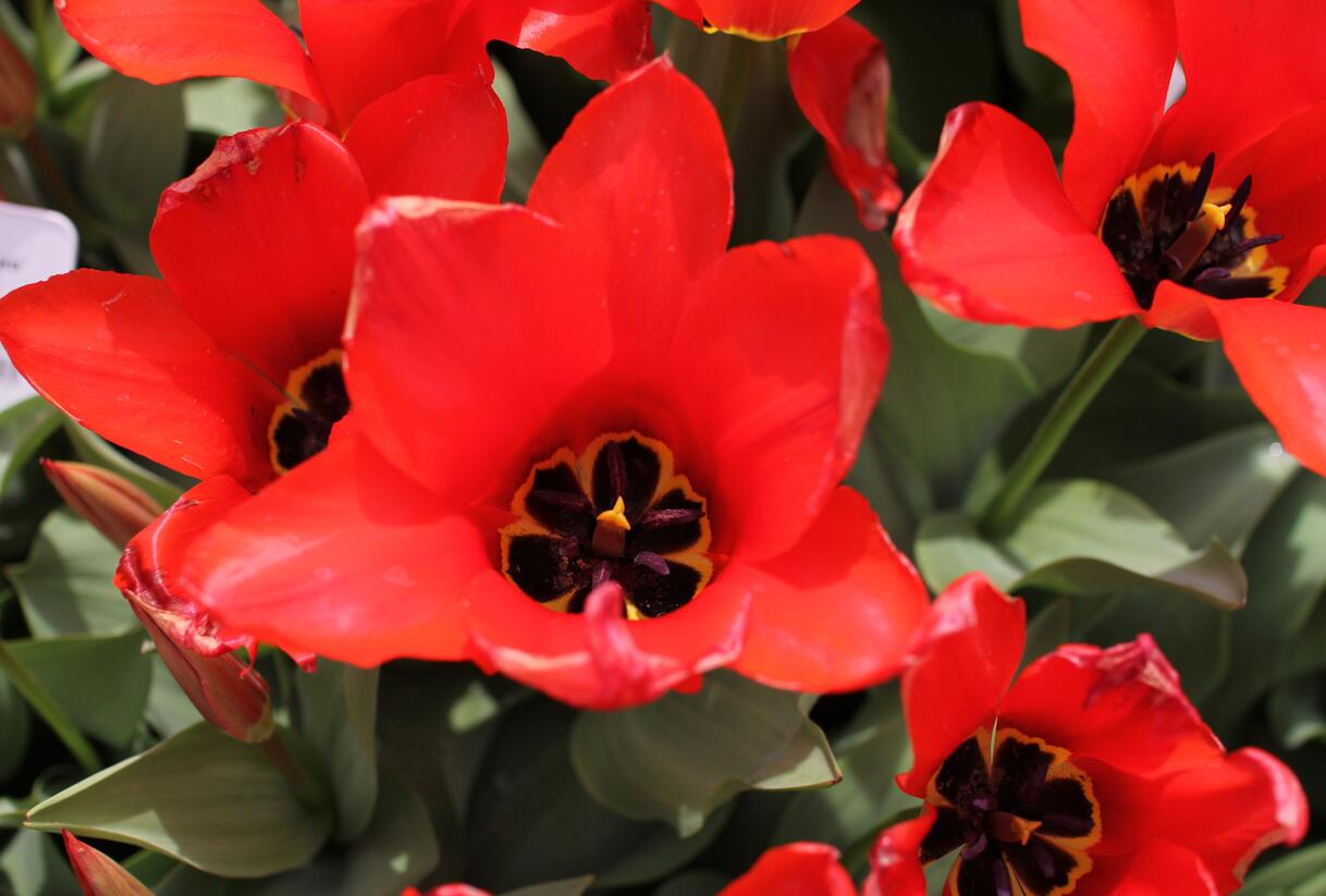 Tulipány jsou cibulovité rostliny, které patří do čeledi Liliaceae - liliovité a rodu Tulipa. Původně se vyskytovaly v Číně na jižních svazích Pamíru, odkud se rozšířily do Turecka, Íránu a Japonska. Dnes jsou velmi rozšířené a za jejich evropskou domovinu je považováno Holandsko. Tulipán Fosterův 'Madame Lefeber' je kultivar kvetoucí velkými hlavami červených květů, se žlutou skvrnou a černými prašníky uvnitř. Tulipán má šedě-zelené listy, pevné stonky a v dospělosti doroste do výšky 40 cm.