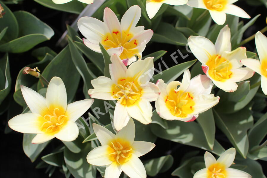 Raný tulipán, který kvete už v dubnu. Díky svému nízkému vzrůstu (15–25 cm) a široce rozevřeným květům připomínajícím leknín patří mezi nevšední tulipány. Jeho květy mají krémově bílou barvu s jemným růžovo-červeným… Vše o produktu