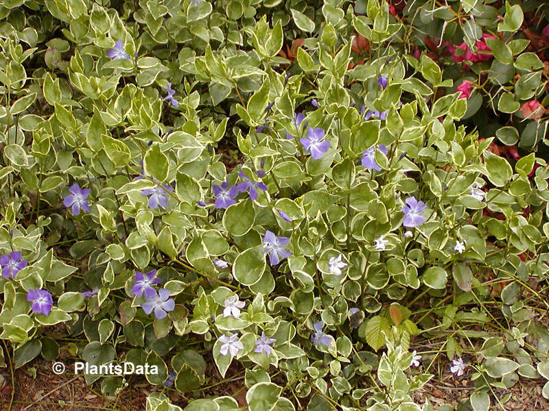 Kultivar 'Variegata' má zelené listy se smetanovým lemem a tmavě modrofialové květy. Kvete od května do září. Rostlina se šíří poléhavými výhony, které mají tendenci k zakořeňování. Sestřih výhonů vede k zhoustnutí rostliny.