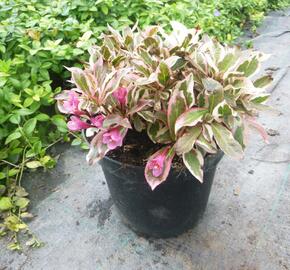 Rostlina pochází z čeledi Caprifoliaceae – zimolezovité a rodu Weigela. Dorůstá do 1 metru výšky a až 1,5 metru šířky. Tento opadavý, rozložitý keř má listy podlouhle vejčité, zelené se žlutým nepravidelným lemem. Květy… Vše o produktu