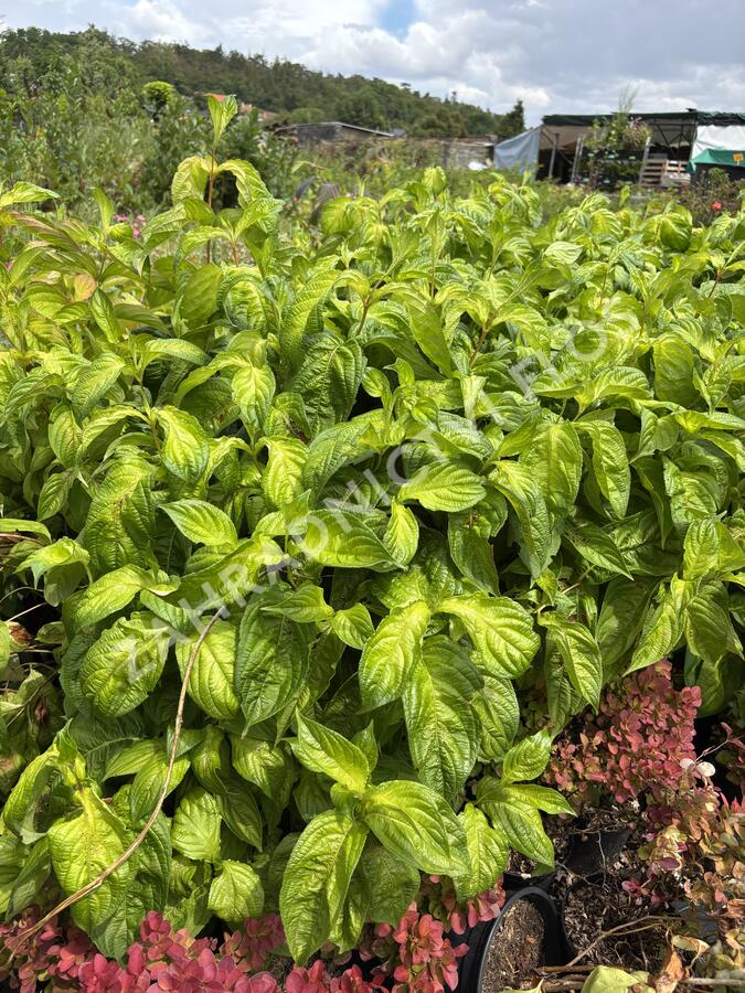 - Krásně vynikne v kombinaci se žlutolistými okrasnými keři, např. tavolník (Spiraea), Tavola (Physocarpus), pustoryl (Philadelpus).