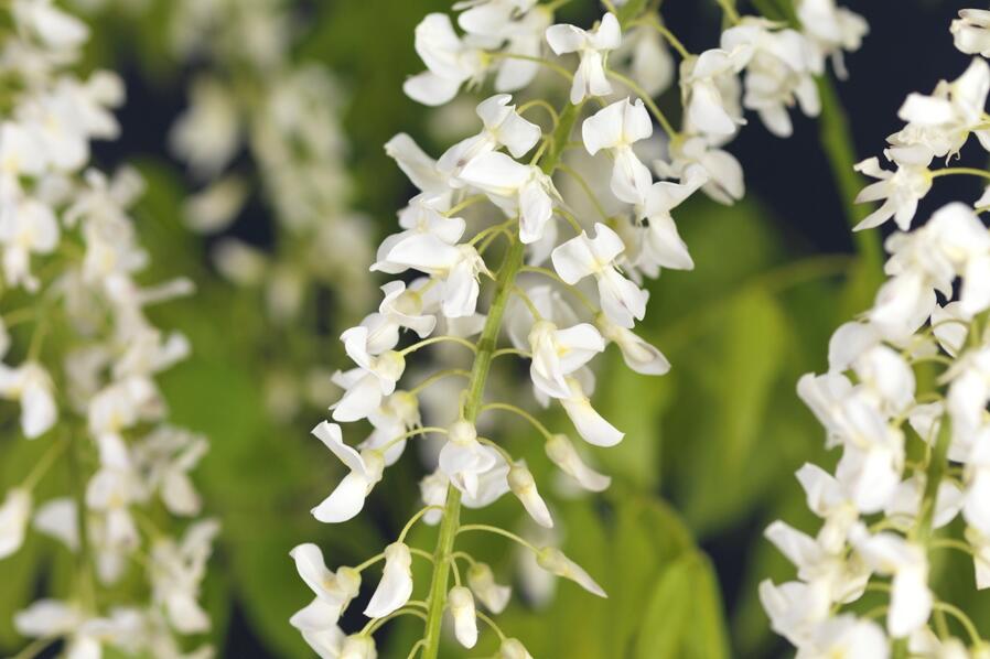 Alba, nebo longissima, je japonská sestra vistárie čínské. Oblíbená popínavá vistárie vás okouzlí nejen vzhledem, ale i vůní. Kvete od května do června jasnými bílými květy na úchvatných dlouhých trsech, které mohou narůst do délky 70 cm.